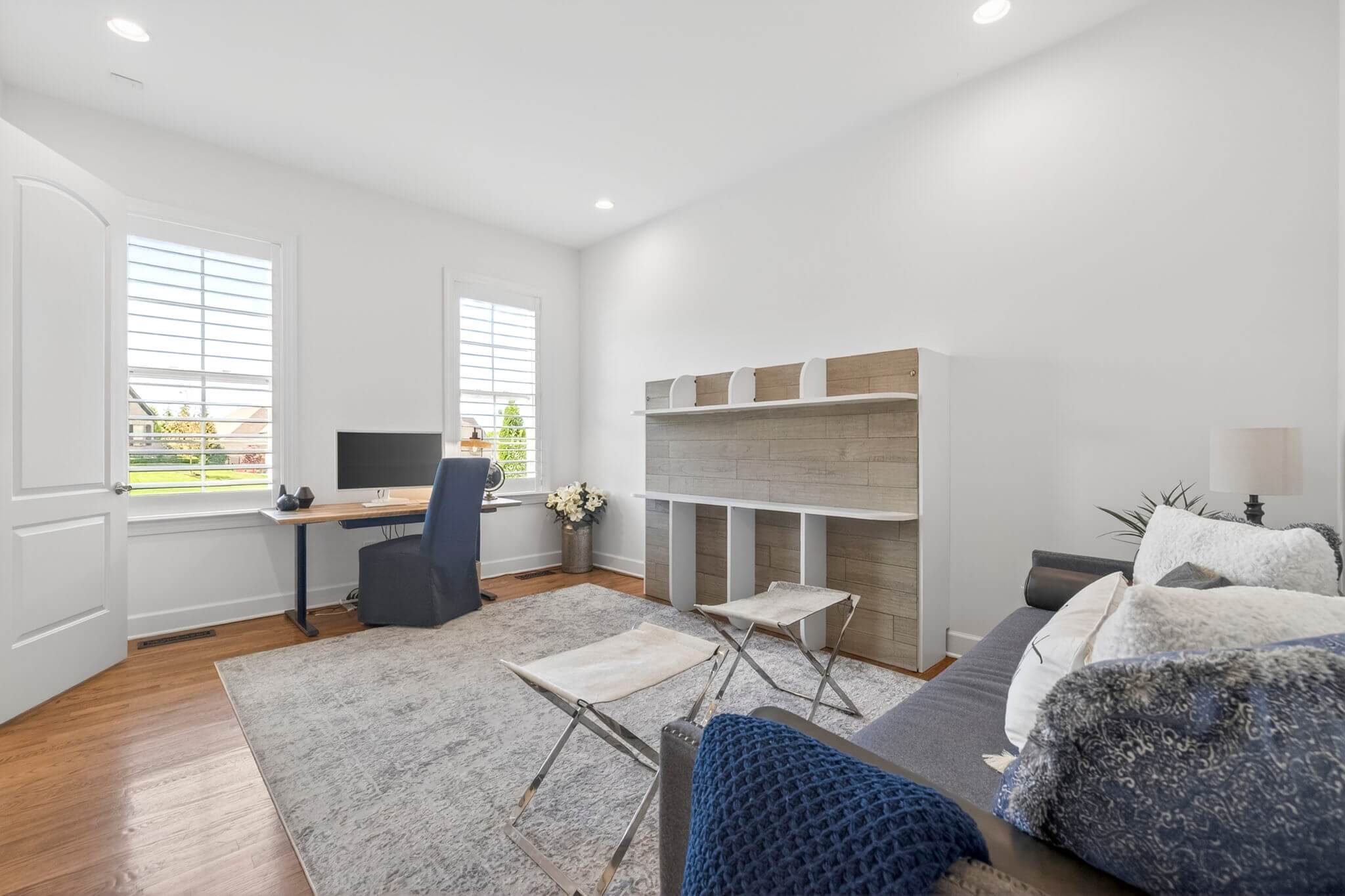 Throughout the home, flexibility remains a defining theme. Multiple work-from-home spaces, including a dedicated private office, provide quiet areas for focus and productivity. Upstairs, a media room — complete with a wet bar, built-in wine fridge, and space for a pool table — creates the perfect setting for entertaining family and friends or enjoying a laid-back night in.
