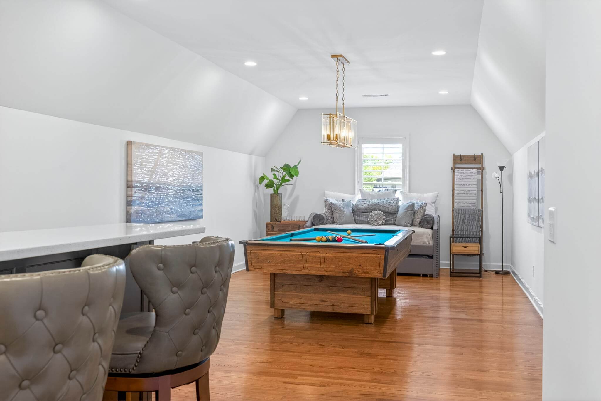 The open layout allows for a dedicated pool table and flexible gathering space.