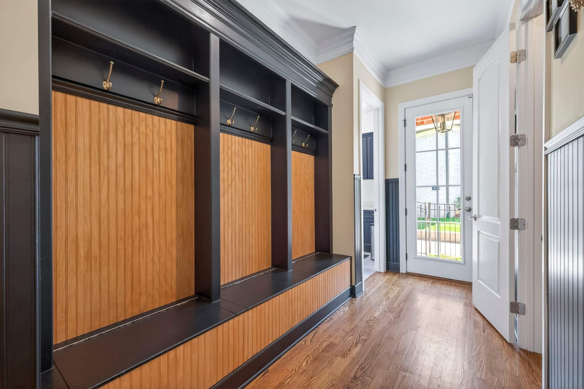 This well-designed mudroom with built-in storage keeps everyday life organized and streamlined.