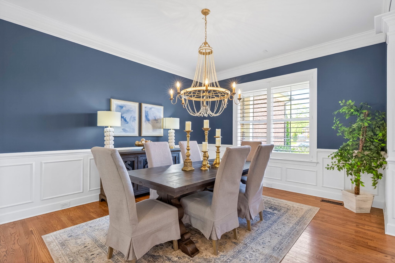 To the right of the entryway, you’ll find a light-filled dining room, perfect for hosting formal dinner parties and casual meals alike.