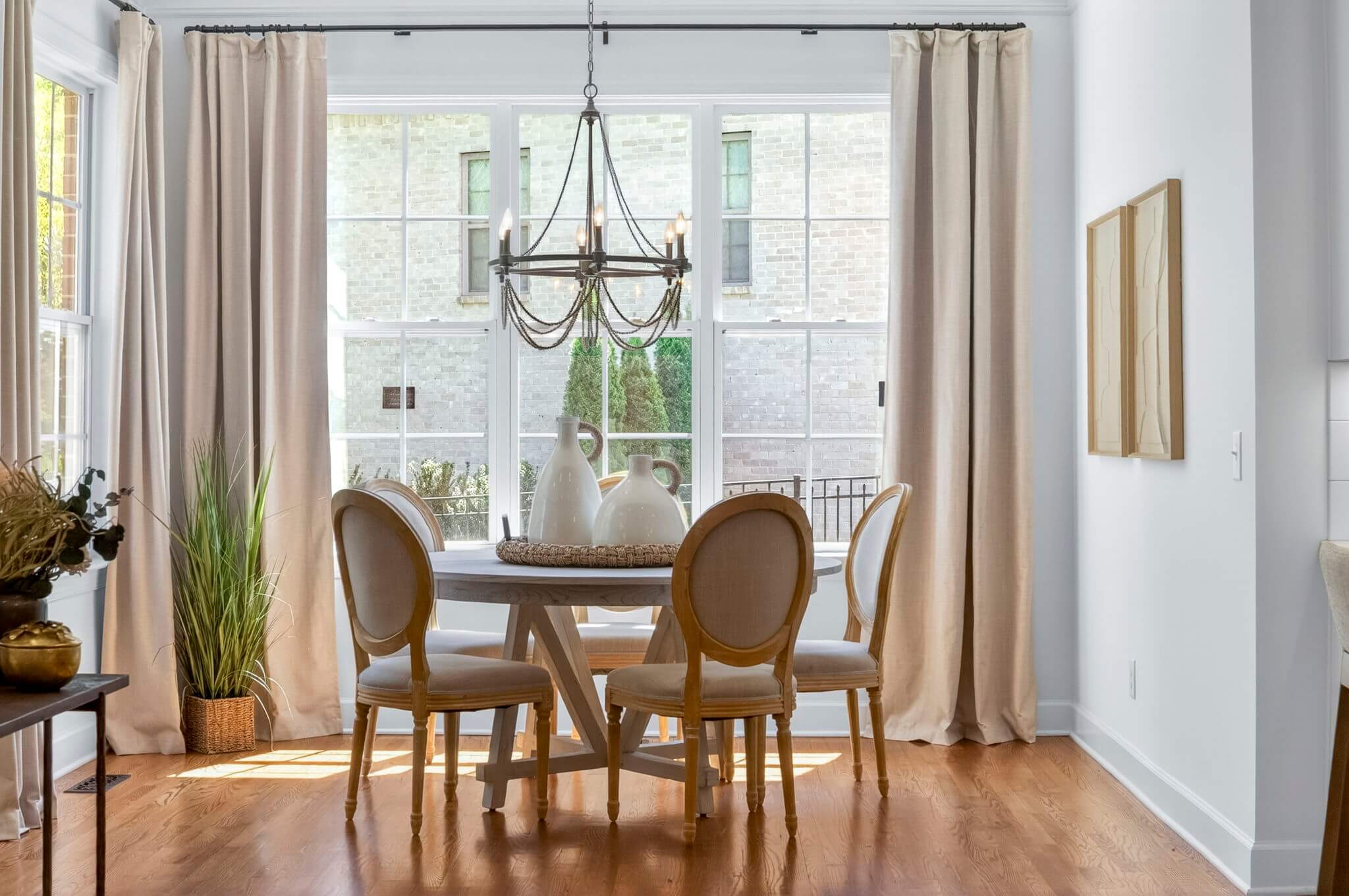 This tucked-away breakfast nook is a bright, inviting space ideal for casual meals.
