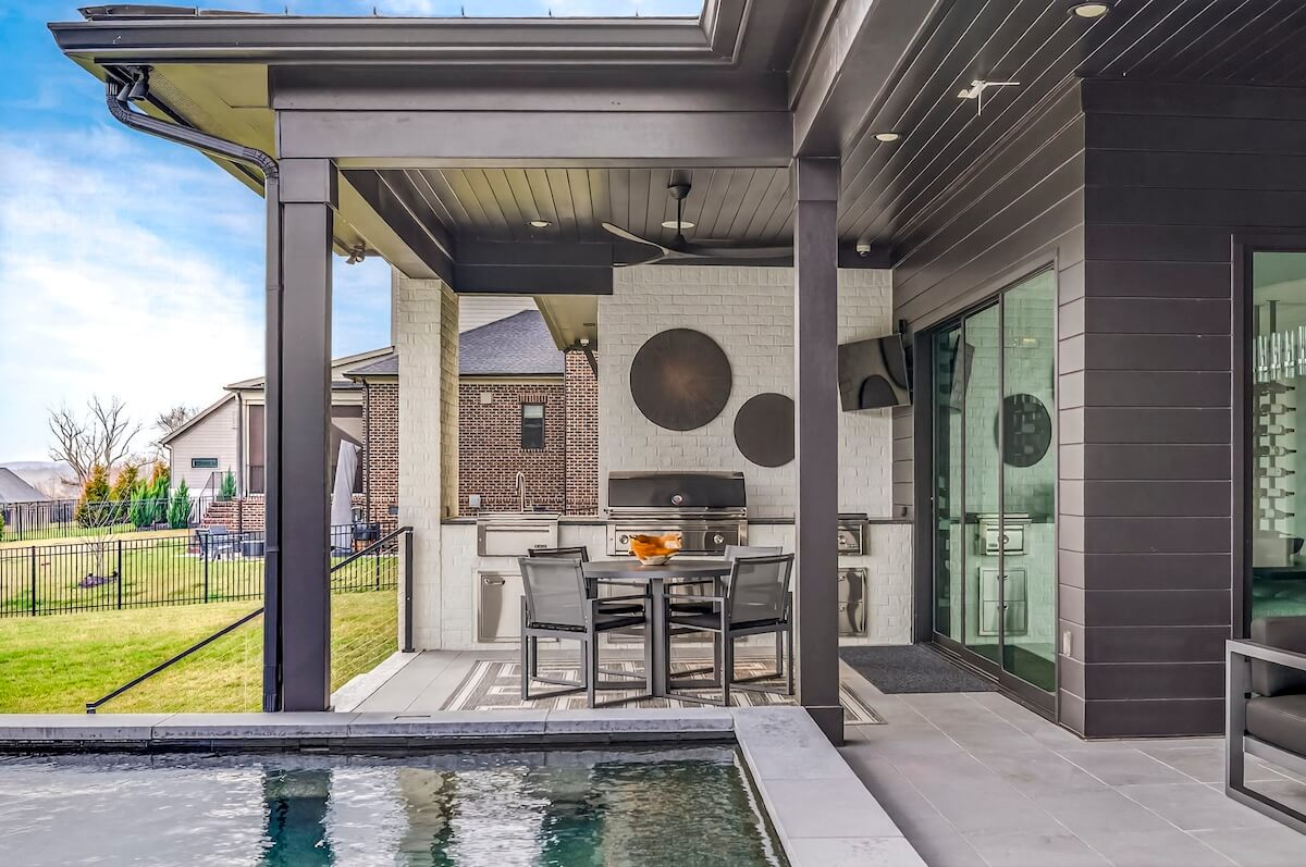 Outside, you’ll see where this property truly shines. The backyard area is the epitome of a private retreat, featuring covered outdoor living and dining areas, an outdoor kitchen, and a sun deck that’s perfect for soaking up warm Tennessee days. The standout feature, however, is the impressive 20-by-16-foot built-in spa and pool.